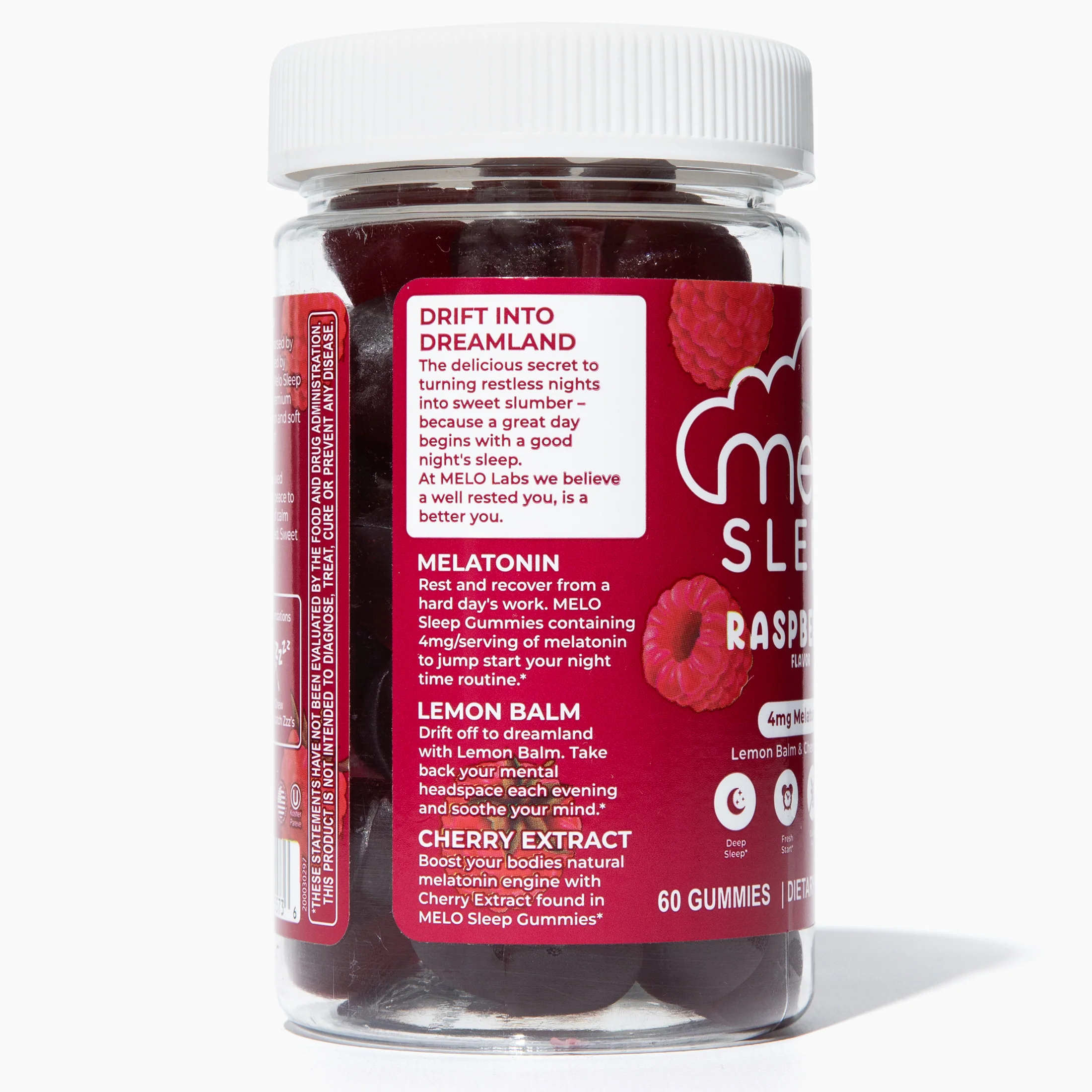 Drift into deep, restful sleep with MELO Sleep Gummies—crafted with 4 mg of melatonin and natural ingredients to help you unwind and wake up refreshed. Deliciously soft and vegan-friendly, they make better sleep as easy as a tasty bedtime treat.